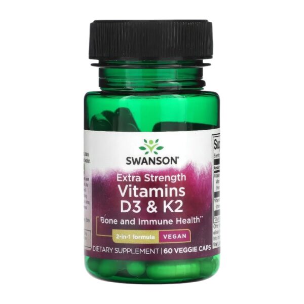Swanson Extra Strength Vitamins D3 & K2 – це інноваційна формула, яка поєднує вітаміни D3 і K2, забезпечуючи комплексну підтримку кісткової системи, імунітету та серцево-судинного здоров’я. Зручна форма капсул допомагає легко інтегрувати цей продукт у щоденний раціон.